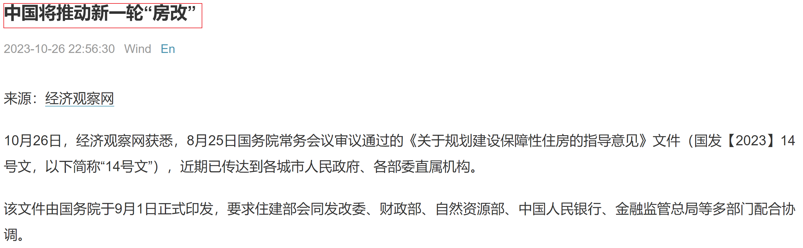 經(jīng)濟(jì)觀察網(wǎng)給出的新聞標(biāo)題是:中國將推動新一輪“房改”。
