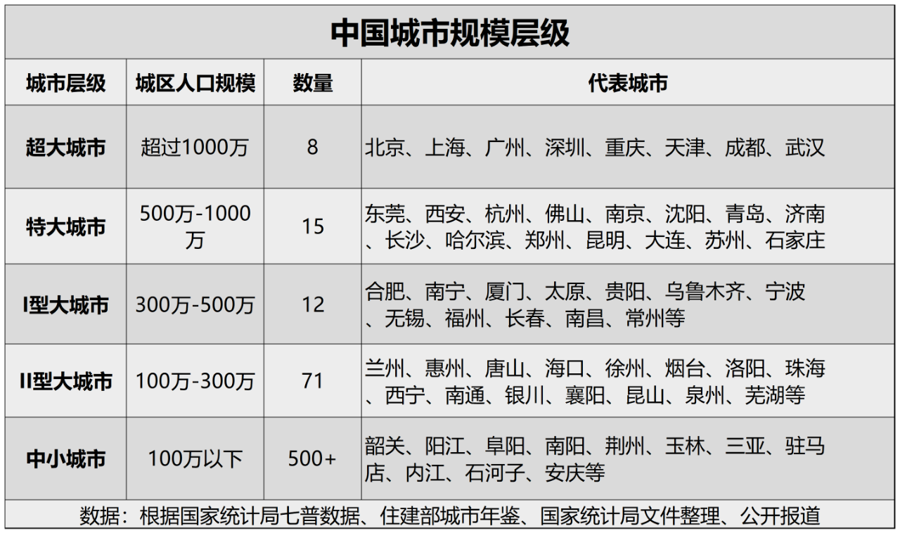 但三年時間,變化很大,其中武漢隨著人口回流,城區(qū)人口已經(jīng)突破千萬成為了超大城市,蘇州因?yàn)楣I(yè)園區(qū)的行政代碼升級,成功晉級為特大城市。石家莊官方也在今年披露城區(qū)人口突破了500萬,晉級特大城市。